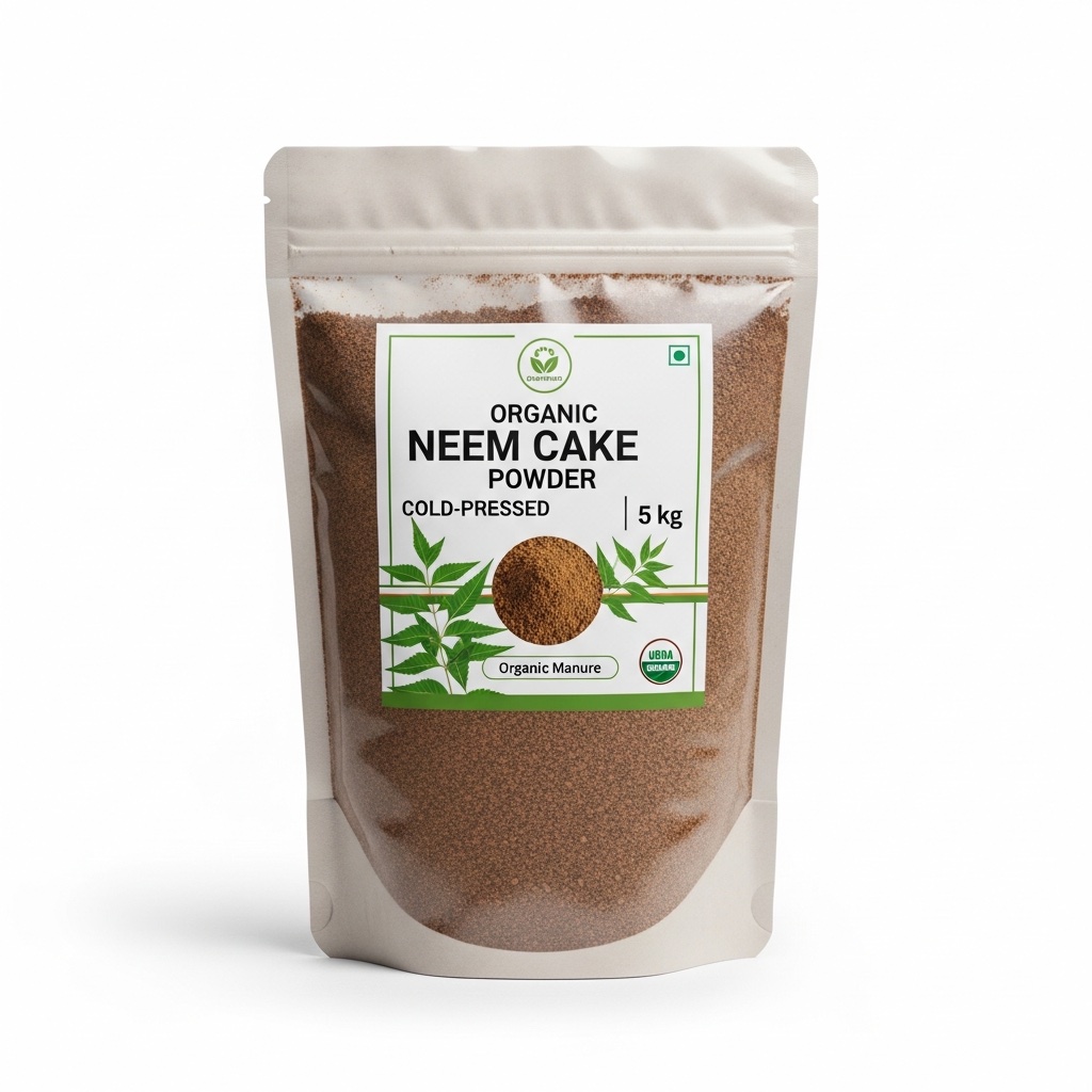 Cold-pressed neem cake made from de-oiled neem seeds. Works as both an organic manure and natural pest repellent. Rich in nitrogen, it nourishes plants while its azadirachtin content deters soil-borne pests like nematodes and white grubs.